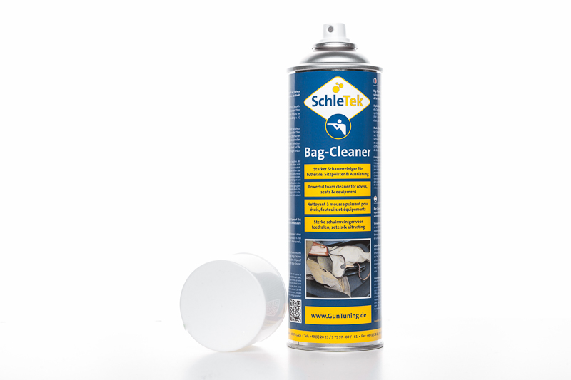 SchleTek Bag-Cleaner ist ein starker Schaumreiniger für Futterale, Sitzpolster, Taschen und andere textile Ausrüstungsgegenstände. Er eignet sich zur Entfernung vielfältiger Verschmutzungen und kann auf nahezu allen Oberflächen verwendet werden. Bag-Cleaner bildet einen Aktivschaum, der direkt auf die Verunreinigung einwirkt und diese herauslöst. Er entfernt erfolgreich z.B. Blut, Insekten, Nikotin, Teer, Fett, Öl und Ruß.